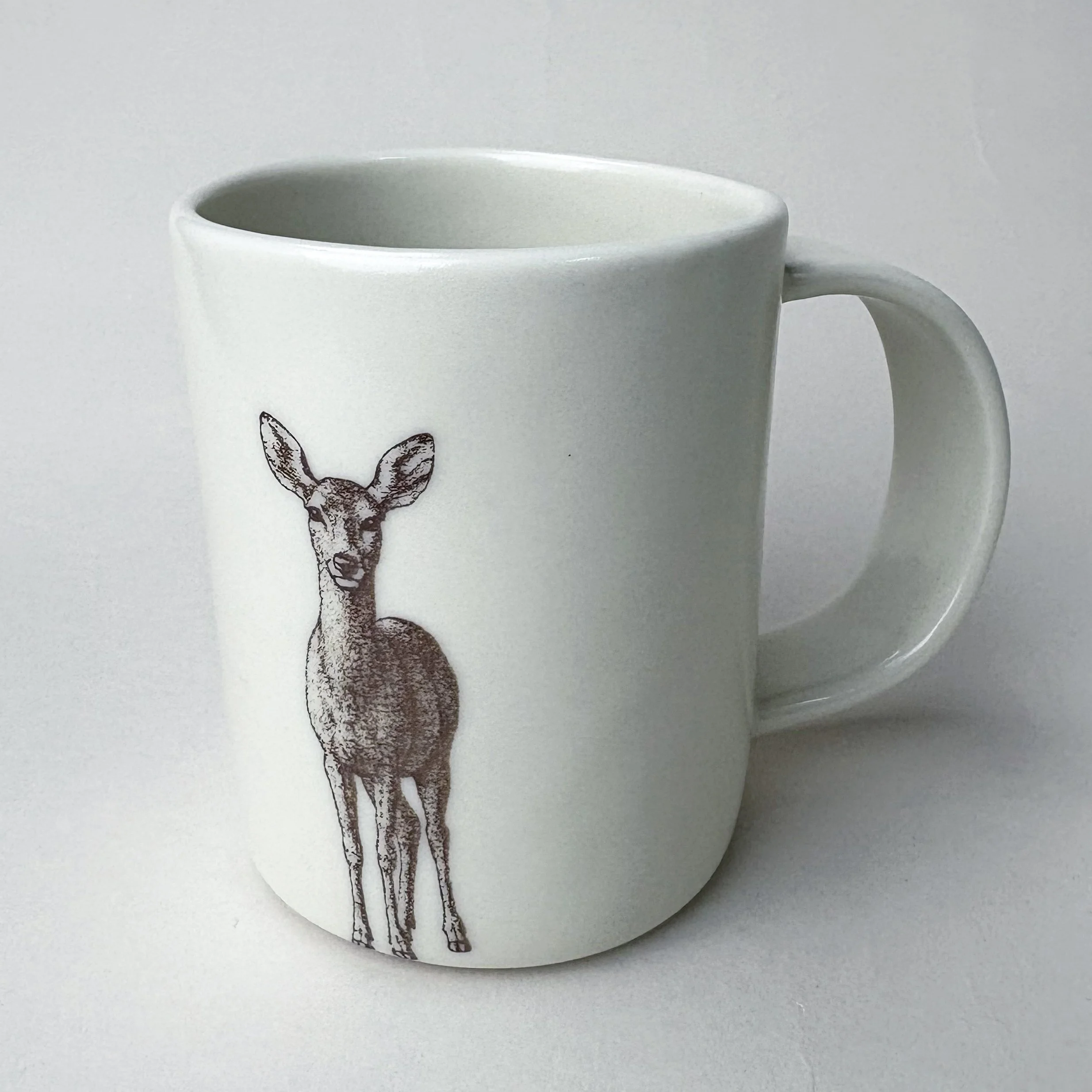 10oz mug with handle glazed in original glaze. Feels wonderful in the hand, and is good for any beverage: a hot one in the winter, a cool one in the summer. The antique illustration is permanent and food safe.